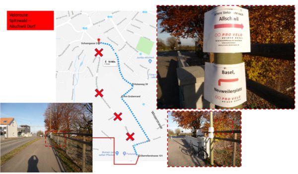 Pro Velo wollte nicht so lange warten, und hat zwischen Spitzwald und Allschwil Dorf die sicherere Route ausgeschildert. Damit soll vermieden werden, dass Ortsunkundige weiter auf der gefährlichen Hauptstrasse fahren. Gleichzeitig zeigt die alternative Signalisierung, dass das im Richtplan festgelegte Veloroutennetz noch immer nicht fertig umgesetzt ist. Der Velo- und E-Veloverkehr hat in Baselland und insbesondere in den dichter bebauten Gebieten noch ein enormes Potenzial und kann helfen, Verkehrsprobleme zu lösen. Voraussetzung dazu ist eine konsequente Planung und speditive Umsetzung sichererer Verbindungen.
